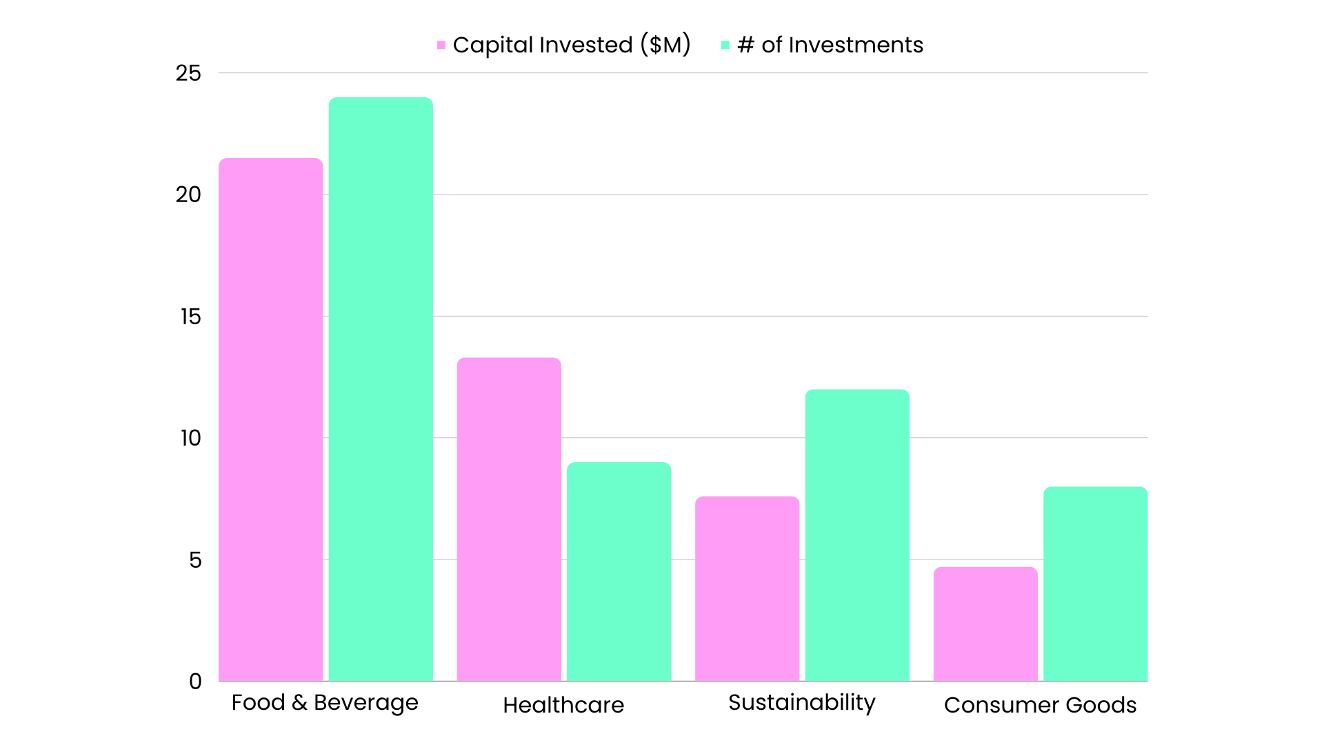 - Food & Beverage, 24 investment offers raising $21.6M (31%) from 9,728 investors.